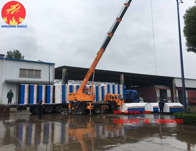 我公司生產(chǎn)的勾臂垃圾車采用高新設(shè)計(jì)可伸縮的鉤臂,實(shí)現(xiàn)垃圾廂的二次吊裝,自吊上放下,可自行傾倒垃圾。該車結(jié)構(gòu)簡單,操作穩(wěn)定方便,裝卸效率高,機(jī)械化程度高,節(jié)省人力。一車可帶多個(gè)大廂,在裝卸的運(yùn)輸過程中可有效地避免二次污染。