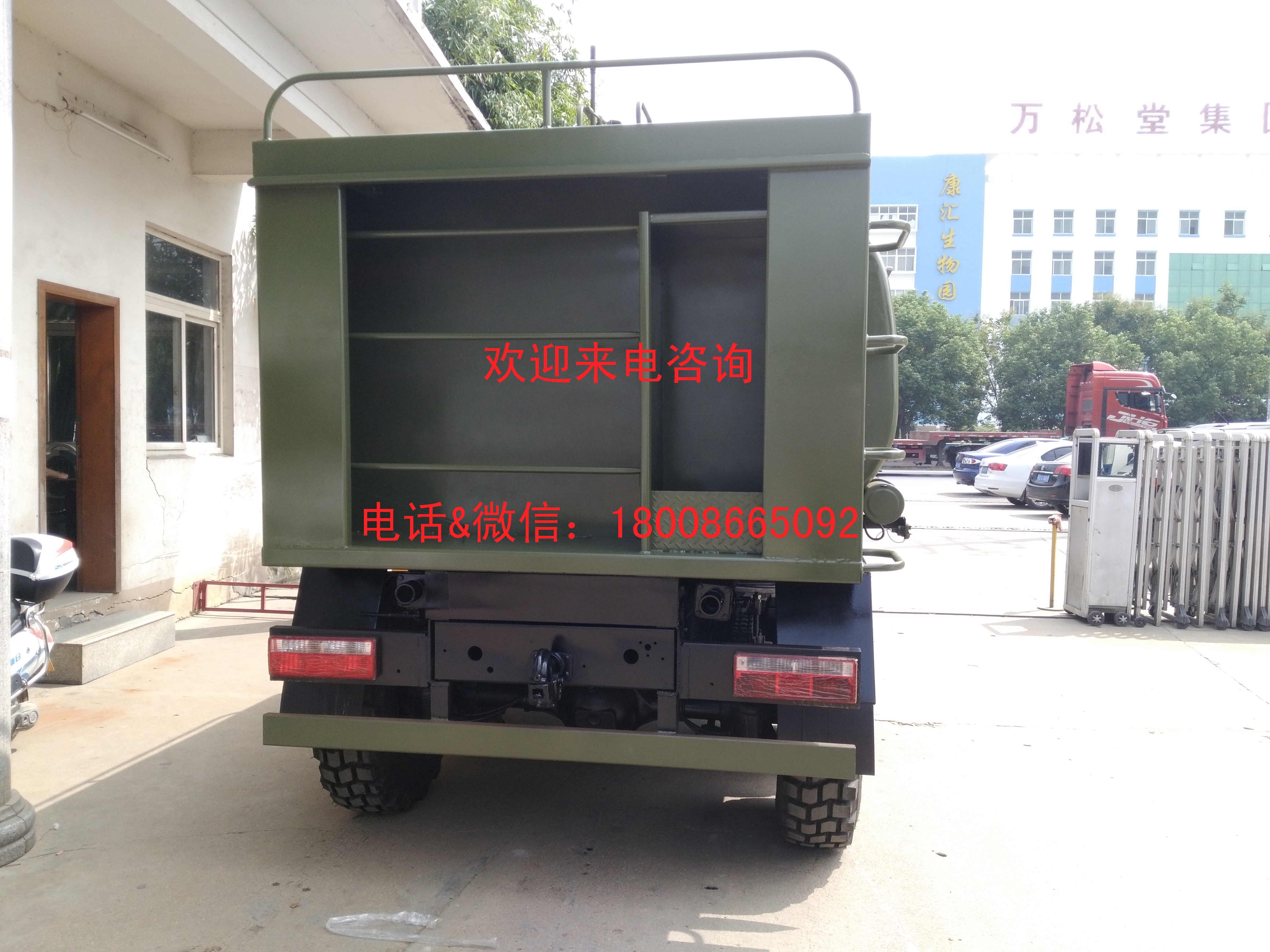 油罐上裝提供5-6立方米的汽油/柴油裝載量,配備自動(dòng)大流量加油機(jī),可以及時(shí)為各種車輛填裝燃料。保障各種車輛的正常運(yùn)行。 罐體尾部配備工具箱,可以存放各種設(shè)備和工具。車頭還可選裝絞盤(pán),施展應(yīng)急救援。