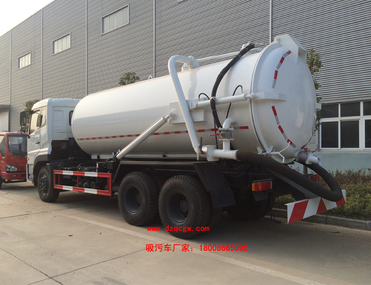 底盤說明:東風(fēng)天龍后雙橋D310平頭標(biāo)準(zhǔn)頂駕駛室,東風(fēng)康明斯高壓共軌發(fā)動(dòng)機(jī),軸距4350+1350(mm),前橋7噸,后橋10噸,11.00R20鋼子胎,空調(diào),巡航系統(tǒng)。罐體有效容積:14.5立方米。 專用功能:吸污車主要用于清洗城市下水道,管道的沉積物,死角泥溝的疏通,也可用于清洗工業(yè)排液管道,壁面等,并可兼作灑水,運(yùn)水和沖公路用,緊急時(shí)可用于救火。 改裝部分:標(biāo)配國產(chǎn)多路閥、油缸;隨州真空泵,油水分離器,四通閥,洗手裝置。罐體后封頭球閥控制自流口1個(gè),1個(gè)視污窗,1根7m吸糞管,舉升式罐體,罐體兩側(cè)油缸,后蓋液壓開啟,機(jī)械鎖緊,帶液位報(bào)警;普通油漆。8方以上安裝雙聯(lián)真空泵。選裝承重報(bào)警器,進(jìn)口刮片威龍泵,雙聯(lián)泵,加裝灑水裝置。 |