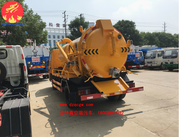 底盤說明江鈴單排可翻轉(zhuǎn)駕駛室,國五江鈴115馬力柴油發(fā)動機(jī),7.00鋼絲胎,油剎,五檔箱,后橋3.5噸,帶排氣制動,ABS。運(yùn)輸品名:液體污染物,密度800千克/立方米,罐體有效容積:1.96立方米,罐體長度(mm)(直段長×直徑)2600×1000.