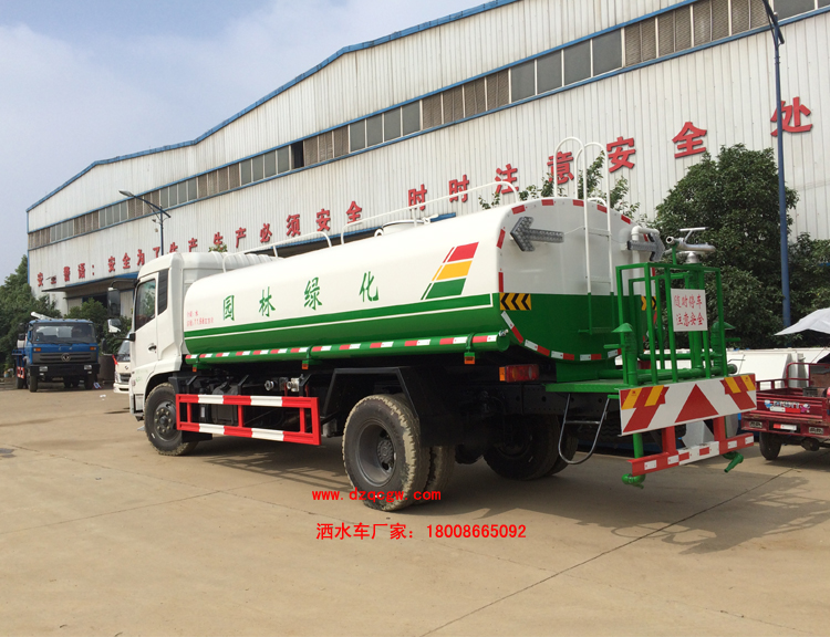 底盤說明:東風(fēng)天錦國(guó)五底盤,國(guó)五康明斯發(fā)動(dòng)機(jī),4.5T前橋,9噸后橋,東風(fēng)6檔變速箱,9.00R20鋼絲胎,帶空調(diào),ABS。外形長(zhǎng)8600,8400mm與軸距4700,4500mm一一對(duì)應(yīng),罐體有效容積:11.15立方米。運(yùn)輸介質(zhì):丙酮水溶液。帶免征。 專用功能:該多功能灑水車適合于各種路面的灑水、噴霧、降溫、除塵、沖洗塵埃臟物,亦可用于園林綠化、市政環(huán)衛(wèi)、路面養(yǎng)護(hù)及應(yīng)急消防、運(yùn)輸飲用水等。專用部分由罐體、水泵、球閥、輸水管道、灑水裝置等部件組成。水泵、取力箱、球閥均為國(guó)家定型產(chǎn)品,具有性能良好,工作可靠、壓力高、流量大、油耗低等特點(diǎn)。 改裝部分:標(biāo)配前沖、后灑、側(cè)噴、工作平臺(tái)、綠化高炮、自流閥、消防接口,輸水管3米2根,8噸以上罐體帶高位花灑2個(gè),億豐泵或金龍泵,控制方式為手動(dòng)。選裝氣動(dòng)閥門控制;高位花灑,大鴨嘴,藥盤,罐體側(cè)面加裝萬向可調(diào)節(jié)噴頭,罐體后部壓塵噴灑裝置,兩個(gè)圓警燈或長(zhǎng)警燈,LED箭頭燈,泵可選裝威龍泵或農(nóng)藥噴霧裝置。 |