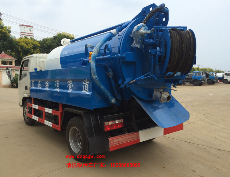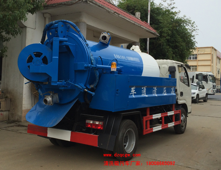 吸污部分主要配備:國產(chǎn)多路閥、油缸;國產(chǎn)高質(zhì)量真空泵,油水分離器,四通閥,洗手裝置。罐體后封頭球閥控制自流口1個(gè),1個(gè)視污窗,1根7米吸糞管,普通油漆。一次性成型舉升式罐體,罐體兩則油缸,后蓋液壓開啟,機(jī)械鎖緊,帶液位報(bào)警。主要用于下水道、雨水井、檢查井、化糞池及各種溝渠內(nèi)的污泥、糞便或石油化工廠污水池淤積物的抽吸、裝運(yùn)和排卸。